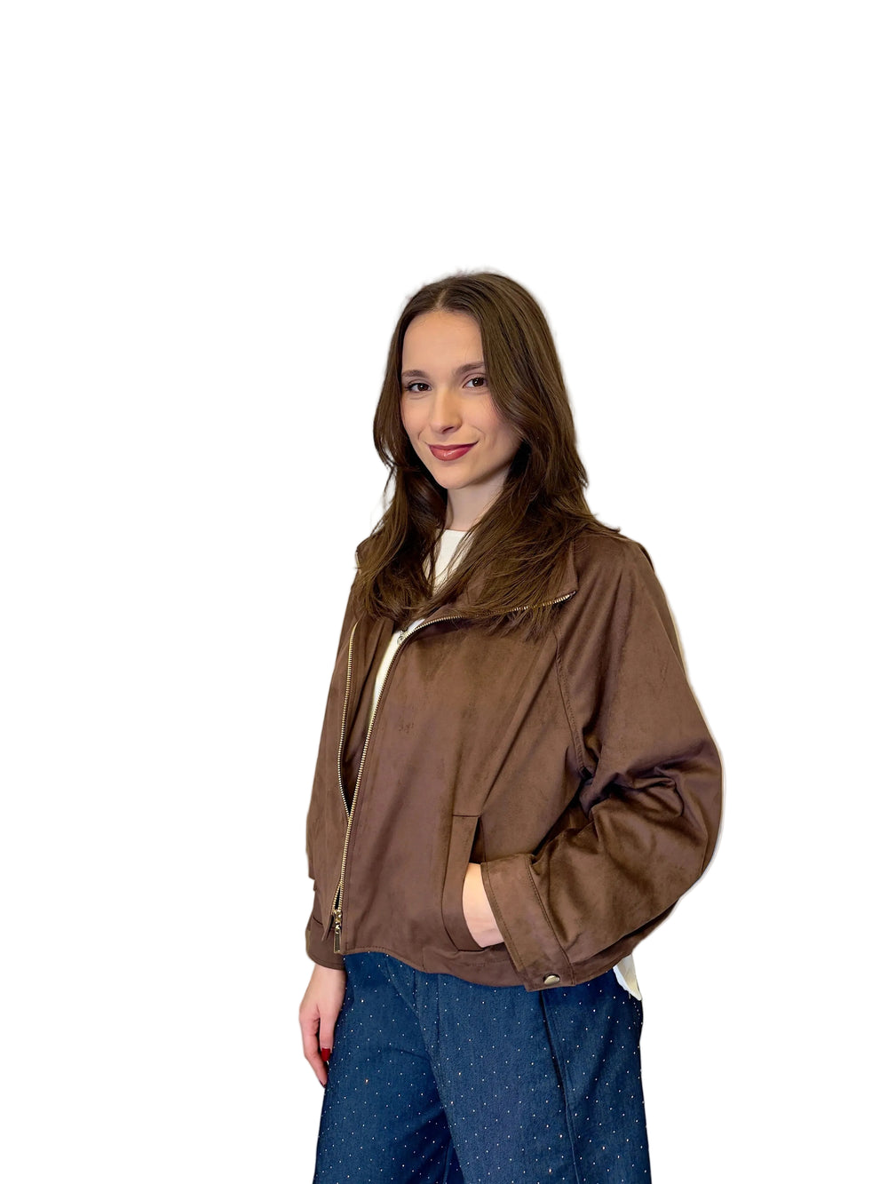 Giacca ecocamoscio borchie